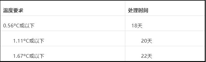所有輸華櫻桃必須采取冷處理,冷處理指標要求如下: